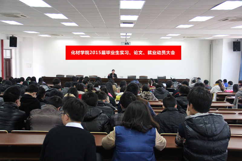 在11C401召开2015届本科毕业生毕业实习、毕业论文暨就业动员大会。出席本次会议的有学院院副院长叶明德、教学科长孙安娜、学生科长王壮以及2015届全体本科毕业生。