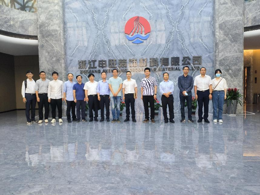 在浙江申旺装饰材料有限公司,双方针对窗花墙纸的材料改性,产品的功能性、透光性的提高等方面进行了较为深入探讨,初步达成持续深入推进产学研实践合作的意向。