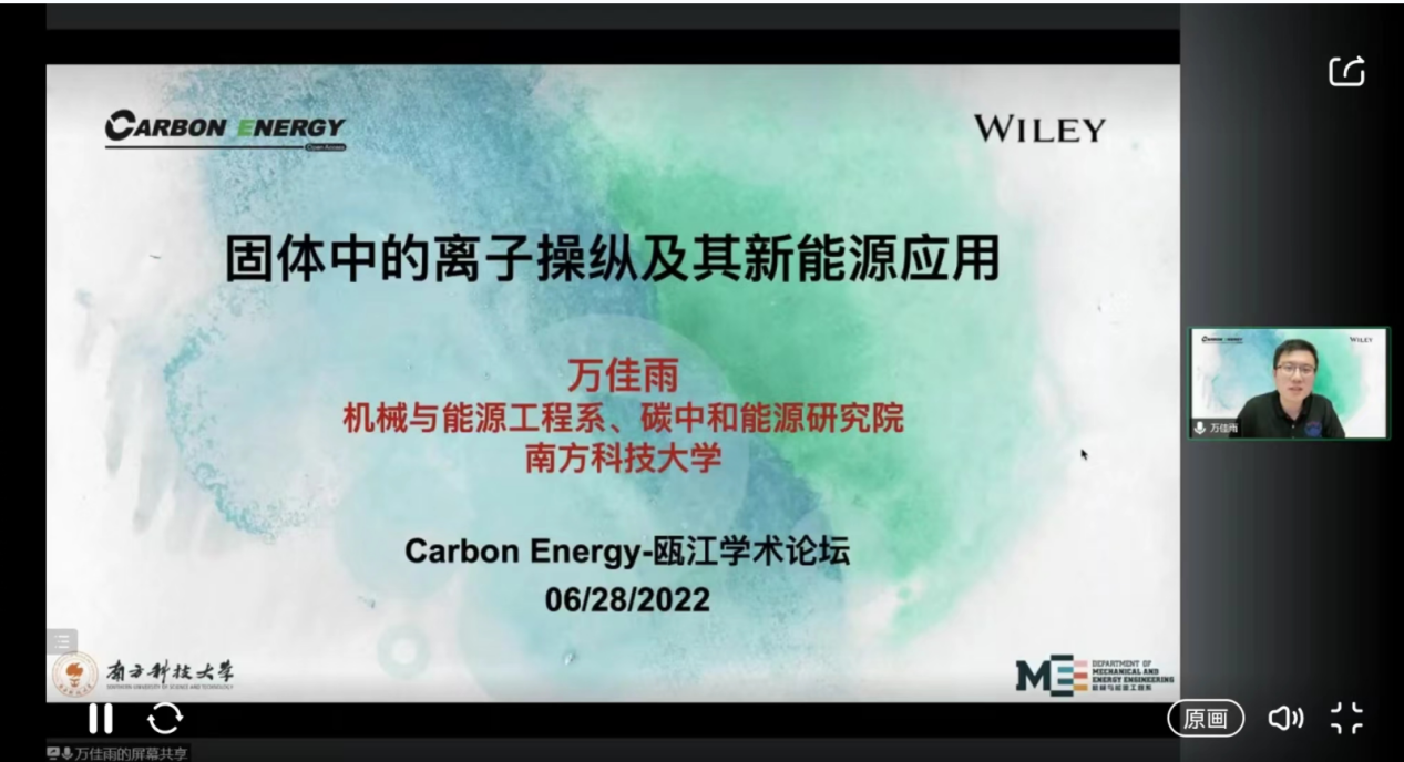 赵世强教授。论坛由CarbonEnergy副主编白正宇教授主持。本次会议在Wiley科研苑、寇享学术等平台同步播出。