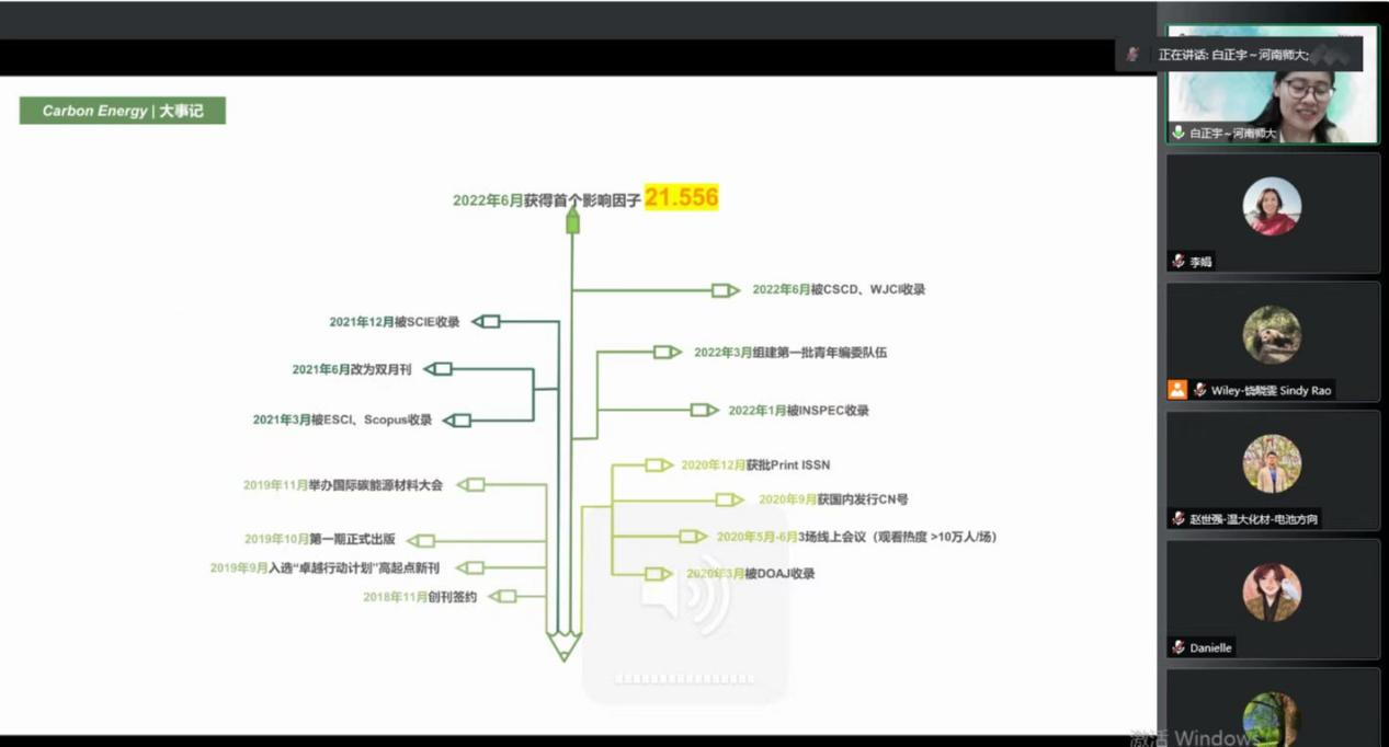当晚恰逢CarbonEnergy获得创刊以来的第一个影响因子,崔光磊教授作为CarbonEnergy作者和专刊客座编辑,周光敏教授和万佳雨教授作为CarbonEnergy青年编委,赵世强教授作为CarbonEnergy主办单位代表,大家纷纷表达了对CarbonEnergy的祝福和期待。