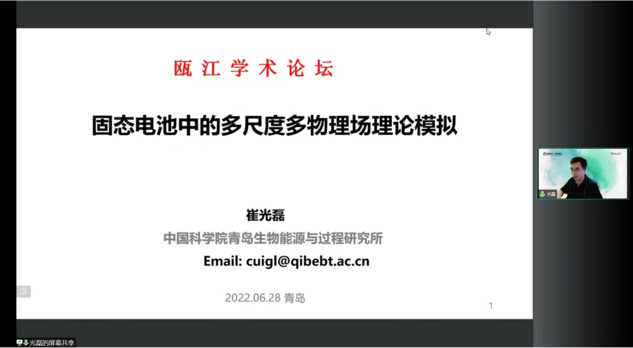 崔光磊教授的报告题目是固态电池中的多尺度多物理场理论模拟。