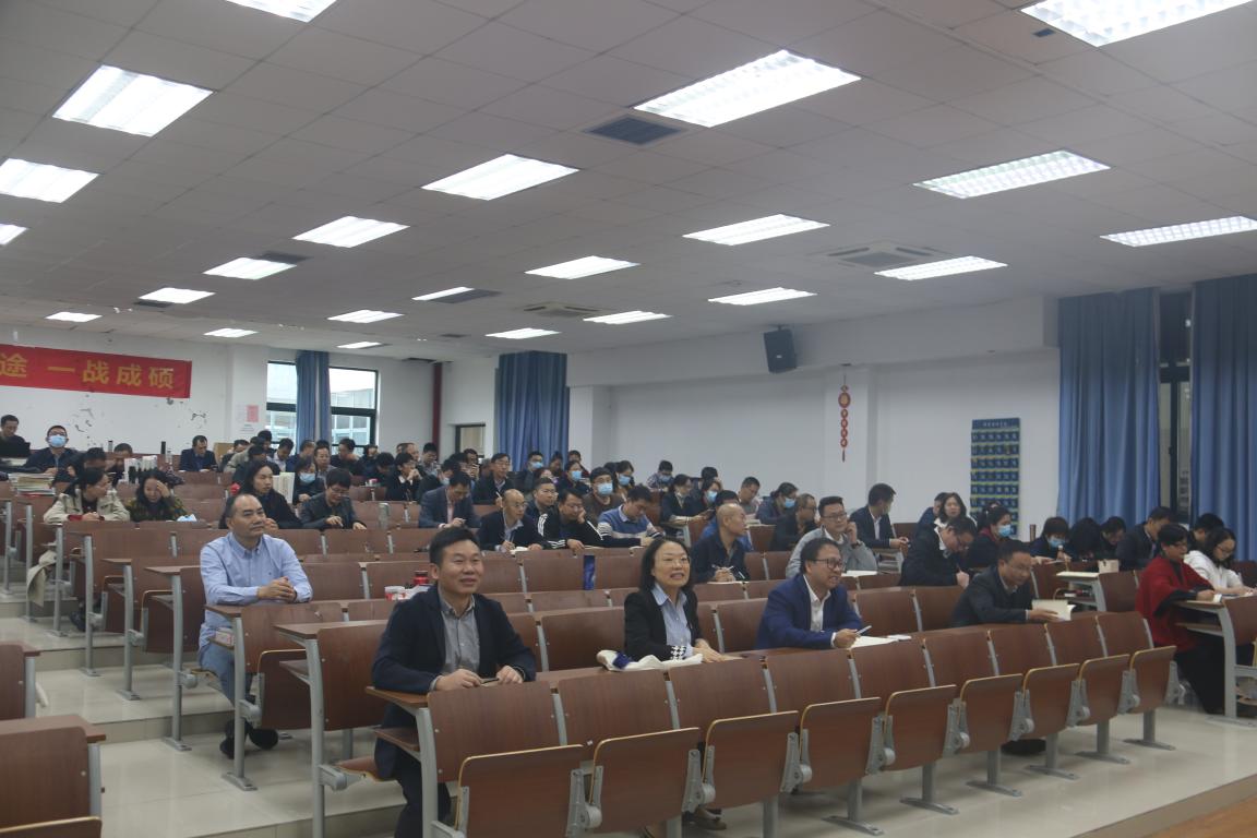 会议邀请马克思主义学院党委书记王柏民作题为《深刻领悟新思想 团结奋进新征程——党的二十大精神学习交流报告》。王书记从党的二十大概况、党的二十大精神要点与特色以及党的二十大精神理解三个方面对党的二十大精神进行了深入解读。他指出党的二十大是全党全国各族人民迈上全面建设社会主义现代化国家新征程、向第二个百年奋斗目标进军的关键时刻召开的一次十分重要的大会。王书记从党的十九大、党的二十大对比分析的角度,着重对“三个务必”、“三件大事”、“新的中心任务”、“中国式现代化”、“五个必由之路”、“六个必须坚持”等二十大精神的创新观点和新思想一一进行了解读。整场讲座,大家都听得聚精会神,在场教职工对王书记深入浅出地讲解表示受益匪浅、耳目一新。