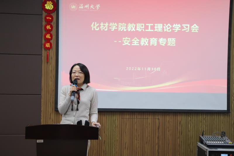 11月30日下午,我院教职工理论学习会在11C401会议室顺利举行,本次理论学习会的主题是安全主题教育学习。本次理论学习邀请校保卫处副处长钱合激做专题报告,会议由院党委书记刘吟主持,学院全体教职工参加。