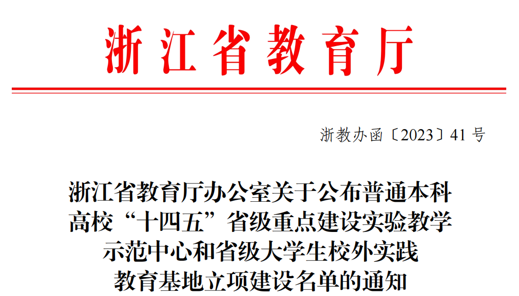 2023年2月16日,浙江省教育厅办公室公布了普通本科高校“十四五”省级重点建设实验教学示范中心和省级大学生校外实践教育基地立项建设名单【浙教办函〔2023〕41 号】,我院材料工程实验教学示范中心成功入选。