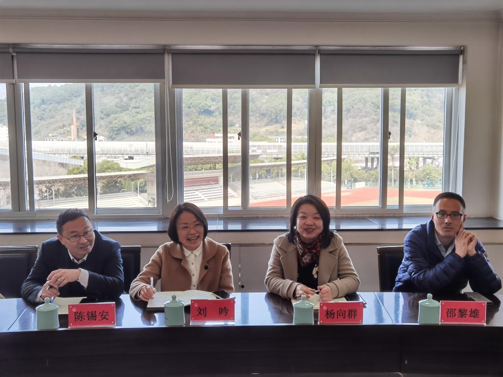 王校长对刘吟书记一行的到来表示欢迎。王校长亲切地回忆了自己在母校的美好时光,分享了个人从求学到工作的成长历程,表示十分感谢母校的培养,并将浓浓母校情牢记于心。随后,王校长就瑞安中学的历史沿革、办学设施、办学成就等基本情况进行了介绍。陈锡安副院长介绍了近年来学院在专业建设、学科建设、师资建设、人才培养等方面取得的成就以及90周年校庆的筹备情况。随后,双方就基础教育、学生实习、学校校庆等方面进行了热烈讨论。