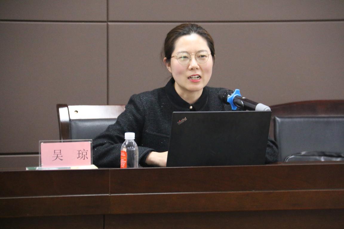 马克思主义学院吴琼副教授作《全面把握全国两会精神的实质》的专题报告。吴老师从两会基本情况、中国式现代化以及全过程人民民主等三个方面对全国两会精神实质进行精彩解读。吴老师表示,深入贯彻全国“两会”精神,要深刻领悟“两个确立”的决定性意义和政治内涵,聚焦“中国式现代化”。