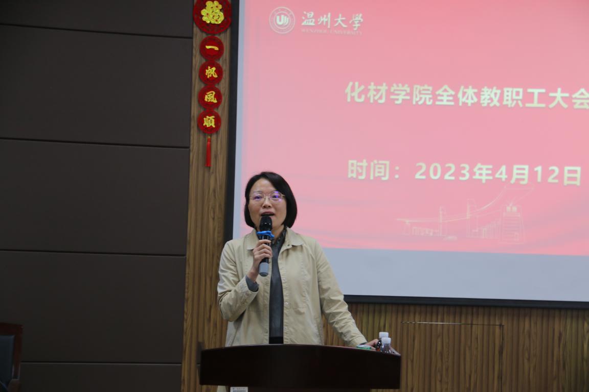 在11C401会议室召开全体教职工大会暨理论学习会,会议由学院党委书记刘吟主持。