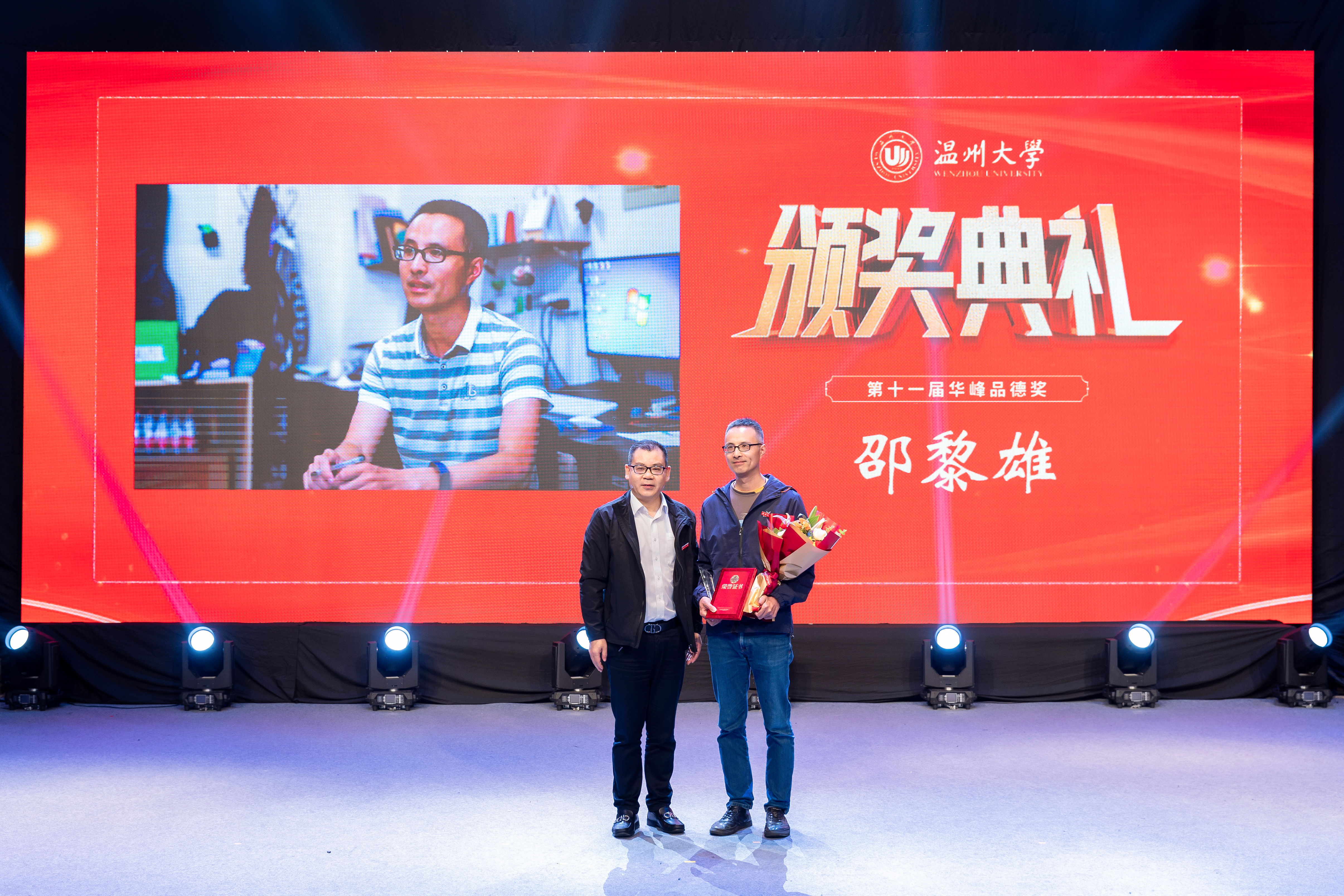 第十一届“华峰品德奖”颁奖典礼在南校区音乐厅举行,我院邵黎雄老师获得该奖项。