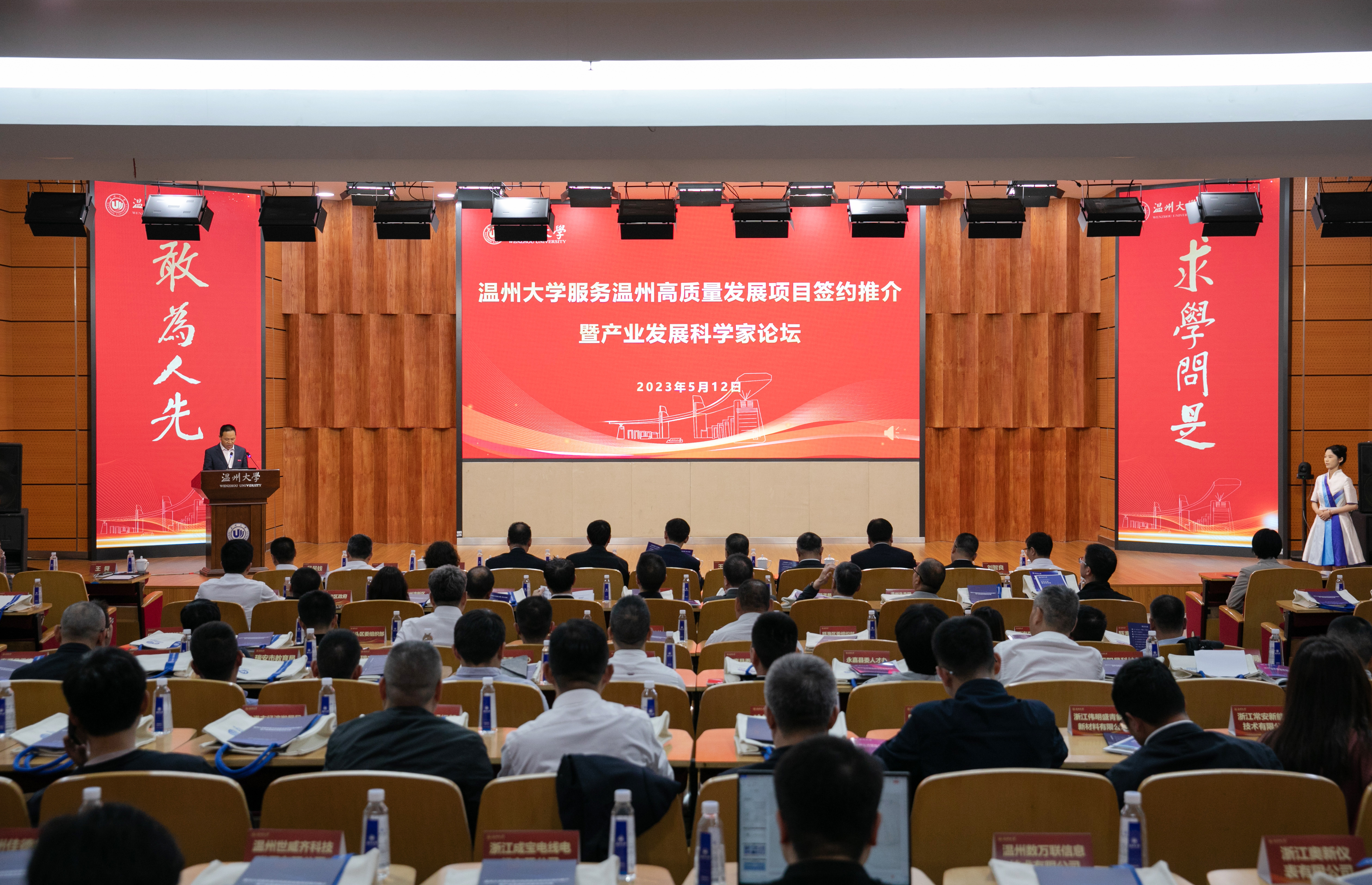 服务地方高质量项目签约仪式在南校区岩松堂雁山厅顺利举行。签约仪式由副校长王舜主持,校党委书记、温州市委组织部部长张健,校长赵敏,副市长王振勇与市、区(县)及学校相关部门领导、及企业、投资界人士共计180余人出席。学院院长杨植教授出席了本次签约仪式。