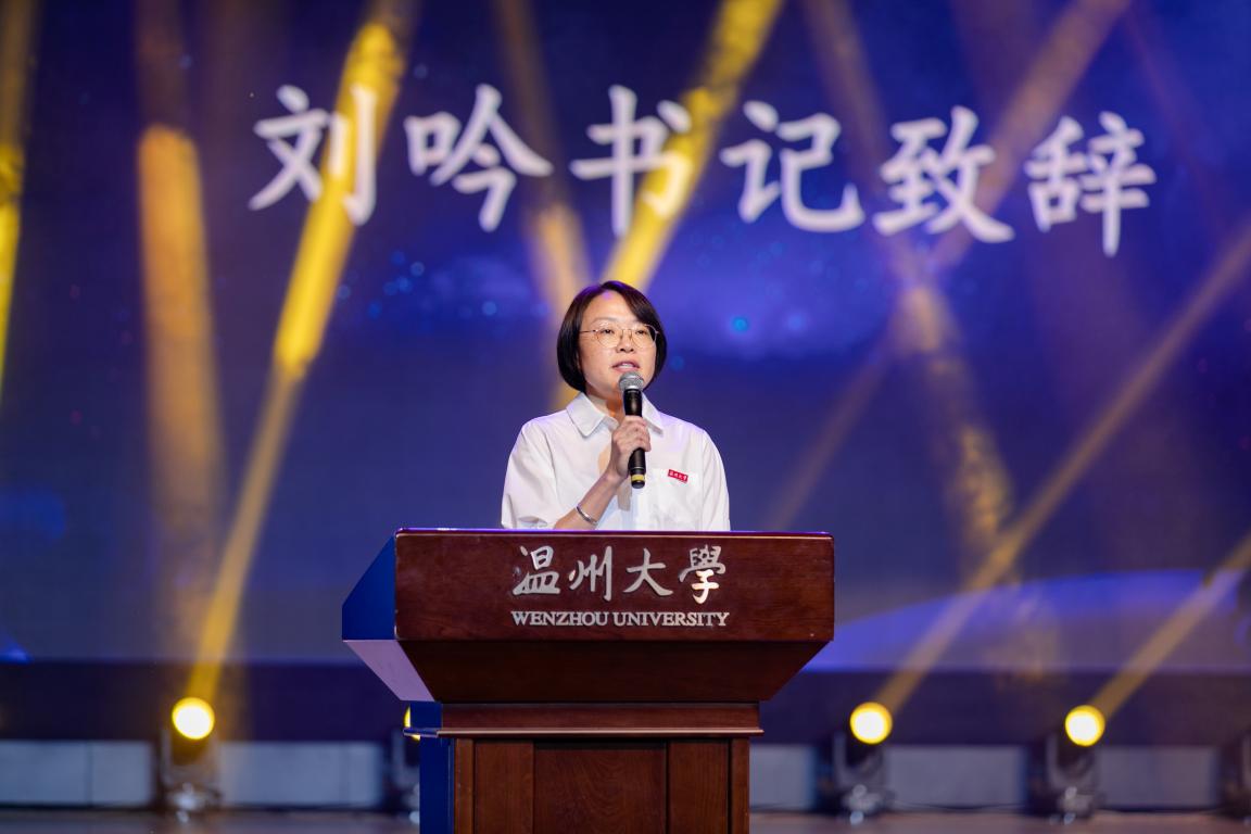 学院党委书记刘吟对晚会致辞,她对于2023届毕业生们表达了关切和展望,并表示不论毕业生们以后身在何处,从事什么职业,学院是他们永远的家,欢迎毕业生们常回母院看看。