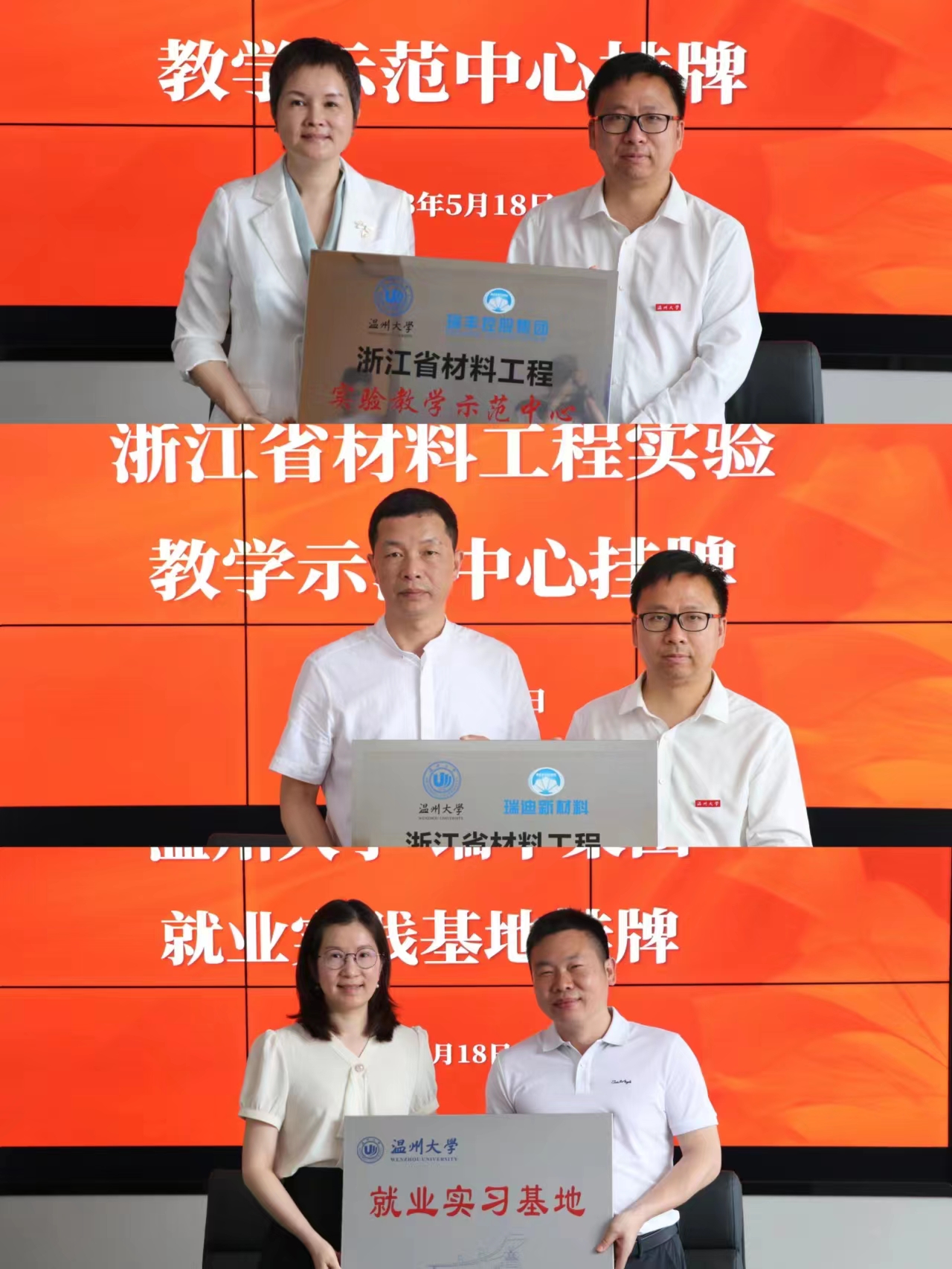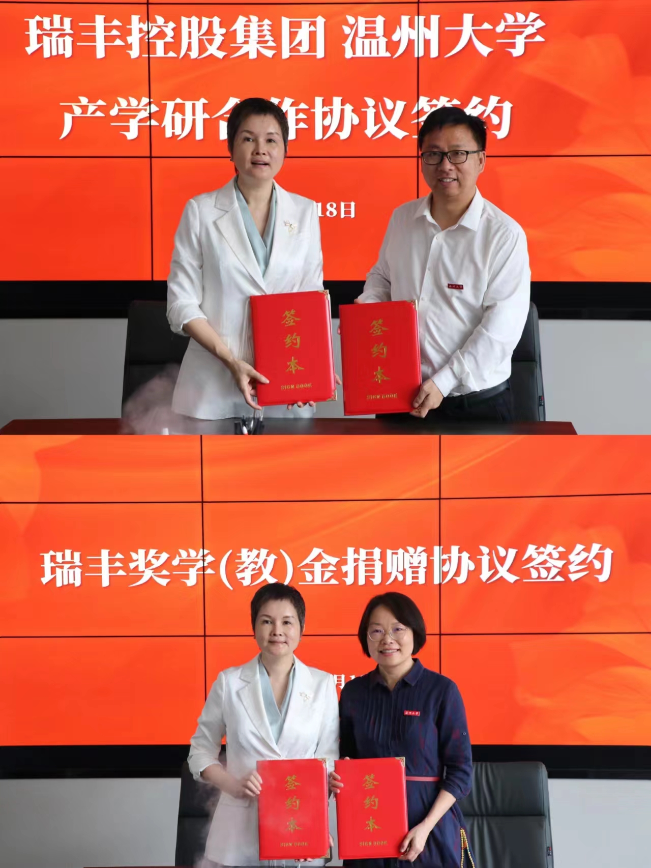 随后,双方进行了产学研合作、校企合作实践基地、就业实习基地、教学示范中心以及瑞丰奖学金捐赠协议签约及授牌仪式。双方还就如何开展多样化校企合作方式开展深入讨论。
