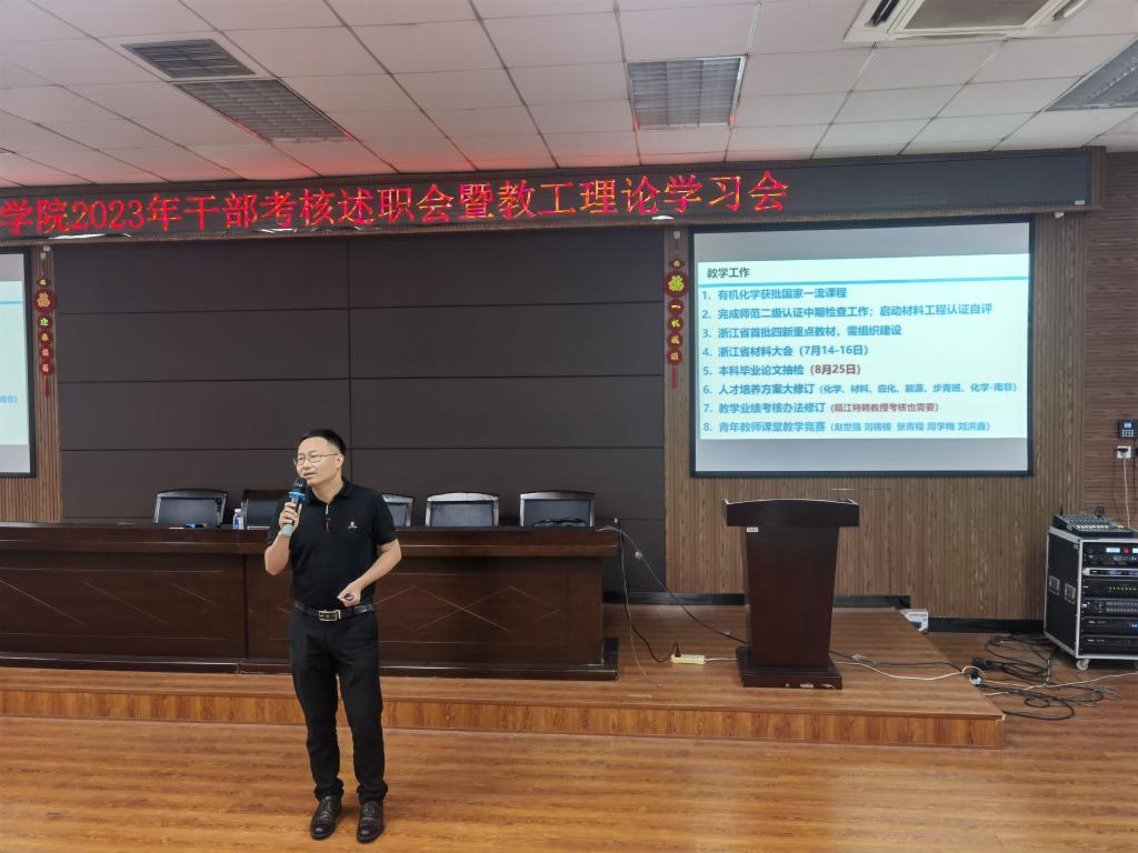 在11C401召开2023年干部考核述职会及教职工理论学习会。会议由学院党委书记刘吟主持,全体教职工参加了本次会议。