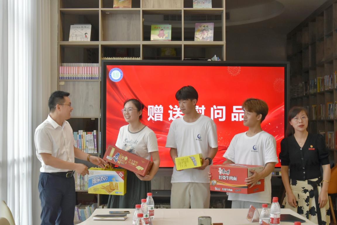 随后,团市委张呈念书记为实践队员们送去慰问品,热情的话语,亲切的问候,温暖了队员们的心灵,也让他们感受到团市委对他们的关怀。队员们也纷纷对团市委的关心表示由衷的感谢,表示会更加努力地为各位同学带来更绚丽多彩的化学世界,也会为提高小学生防溺水意识尽毕身之力,为社会发展做出应有的贡献,不辜负学校、社会的殷切厚望。