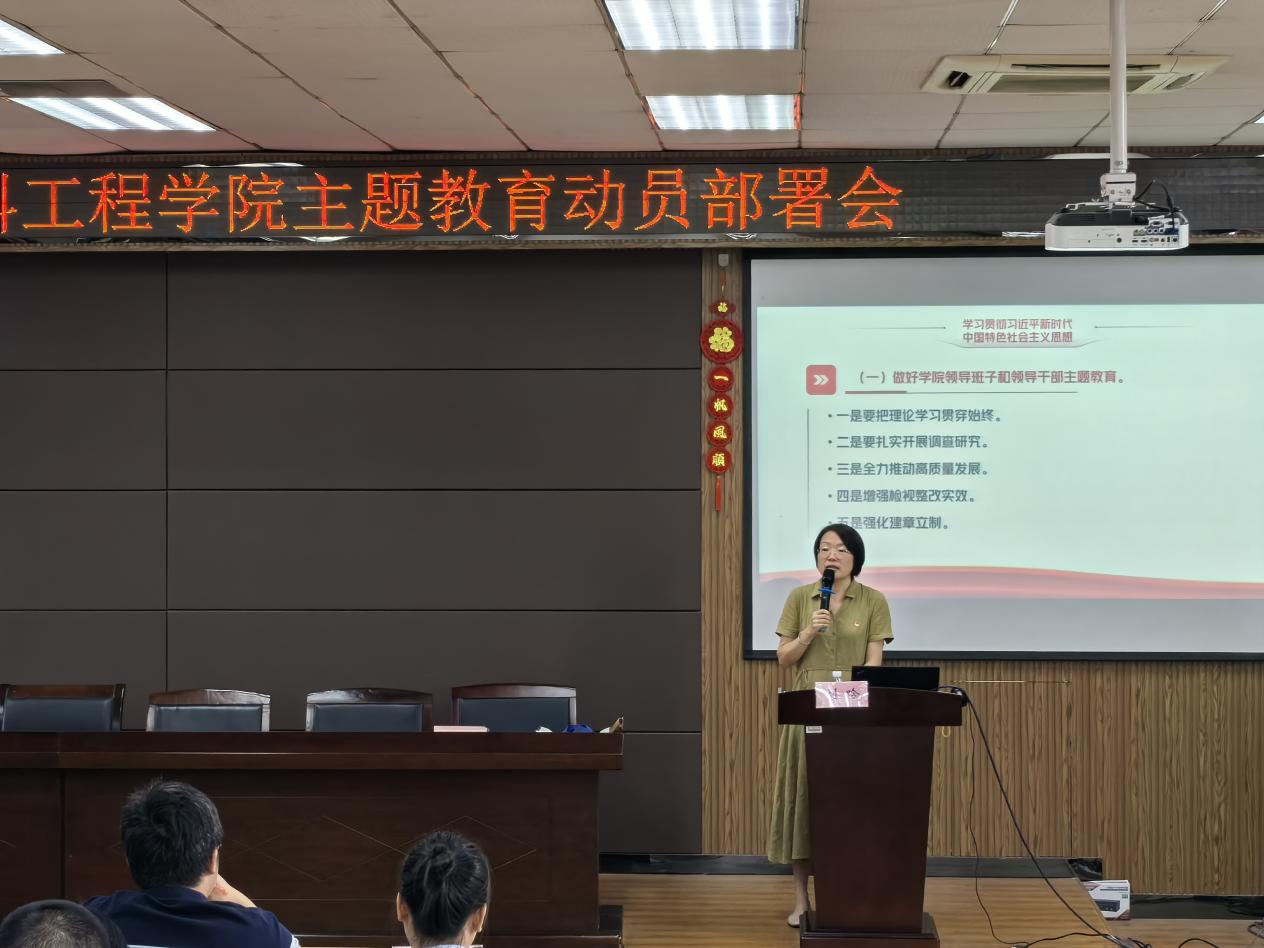 刘吟要求,要把主题教育作为一项重大政治任务抓紧抓实、抓出成效。要压紧压实主体责任,履行好职责,主动谋划研究,推动主题教育走深走实。要注重统筹推进,把开展主题教育同做好教学科研等工作和自身建设结合起来,以主题教育带动学院作风建设和制度建设,促进组织建设,推动学院高质量发展。要力戒形式主义,坚决防止和杜绝在主题教育中出现的各种形式主义现象,把真抓实干、务实高效的工作作风贯穿始终。要大力宣传引导,及时反映主题教育进展成效,营造学先进、赶先进、当先进的良好氛围。