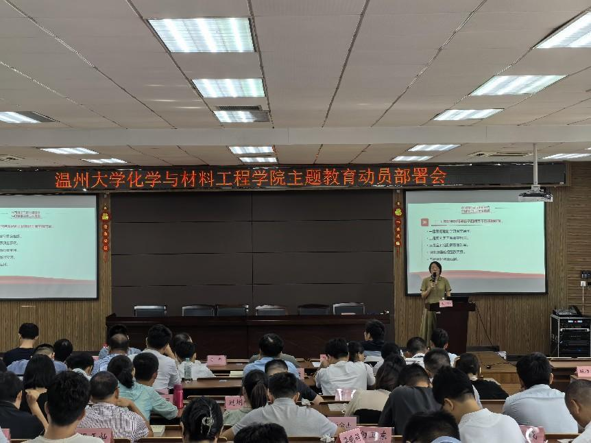 9月20日,化学与材料工程院召开学习贯彻习近平新时代中国特色社会主义思想主题教育动员大会,深入学习贯彻习近平总书记在中央主题教育工作会议上的重要讲话精神,对学院开展主题教育进行动员部署。学院党委书记刘吟在会上作动员讲话,全体教师党员出席会议。