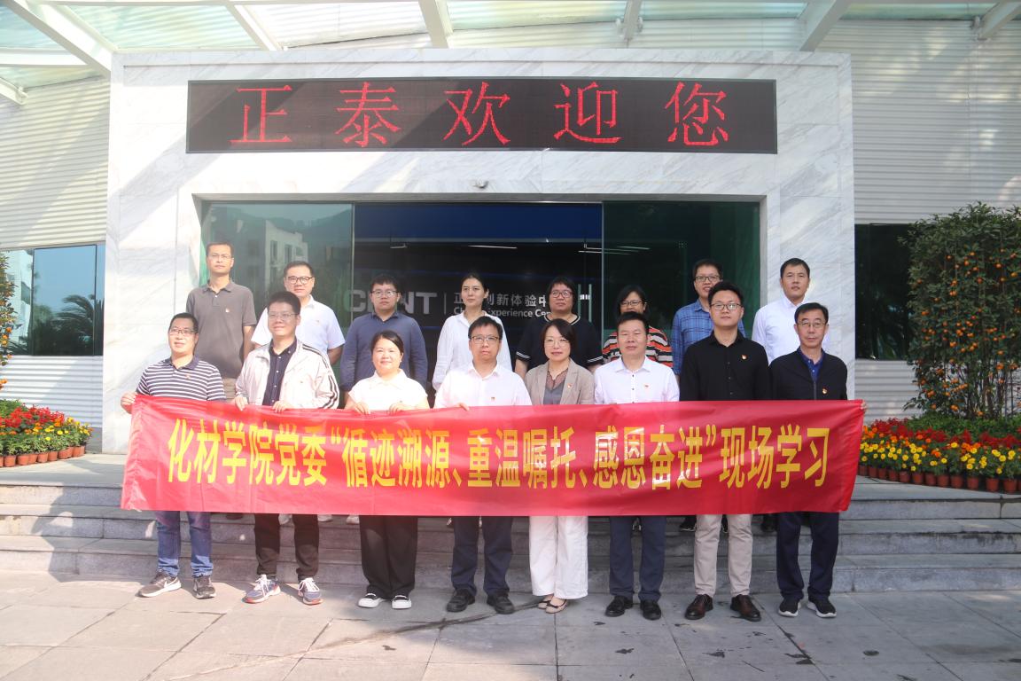 党委赴乐清市正泰集团开展“循迹溯源学思想促践行”活动,追寻领袖足迹,感悟真理伟力,进一步推动学院主题教育理论学习走深走实。化材学院党委书记刘吟、院长杨植、各党委委员、组织员、教师党支部书记及部分教师代表参加了活动。