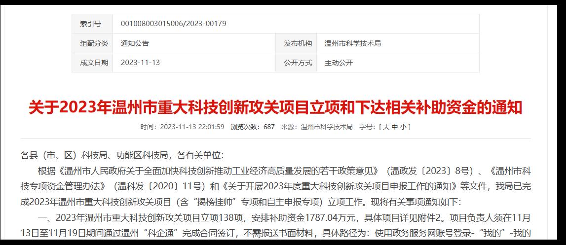 为深入贯彻实施创新驱动发展战略,提高企业自主创新能力,引导各类创新主体加大研发投入,加快建设高水平国家创新型城市,温州市科技局自2021年以来,连续三年开展“揭榜挂帅”方式组织实施重大科技创新攻关项目申报,鼓励国内外具备科研能力的高校院所、企业、创新人才和团队揭榜开展联合攻关,围绕互联网+、新材料、新能源、生命健康等重点产业方向,重点在前沿技术探索、关键共性技术以及产业化等方面研发,突破一批核心技术,研制一批自主创新产品。