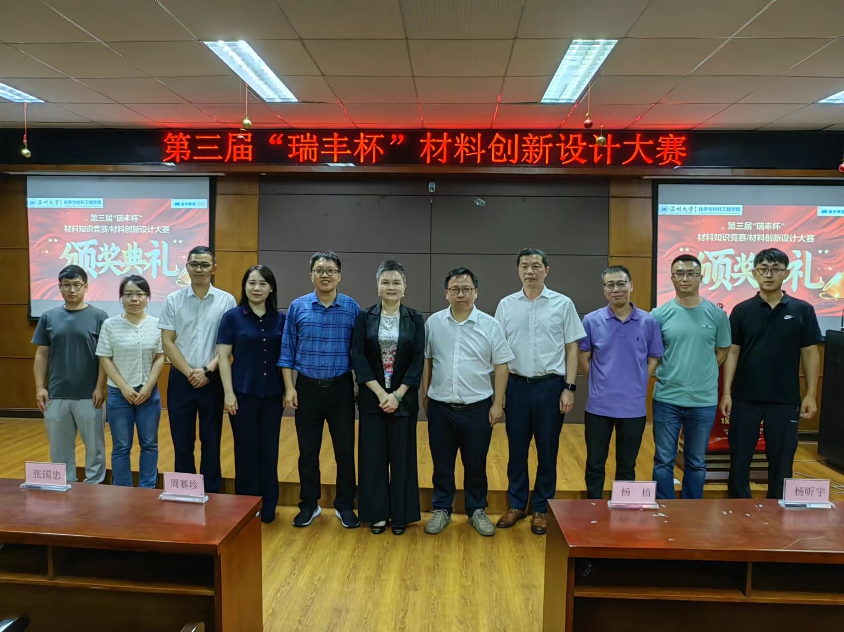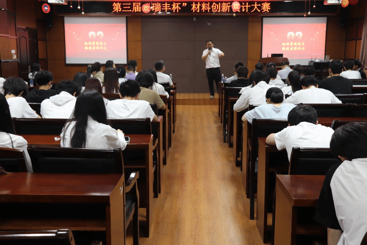 学工办、温州市瑞丰控股集团有限公司在11B208会议室联合举办了第三届“瑞丰杯”材料方案创新设计竞赛。瑞丰控股集团董事长周赛珍女士;瑞迪新材料有限公司总经理张国忠先生;瑞迪新材料有限公司品保部主管田文斌先生;日本a片