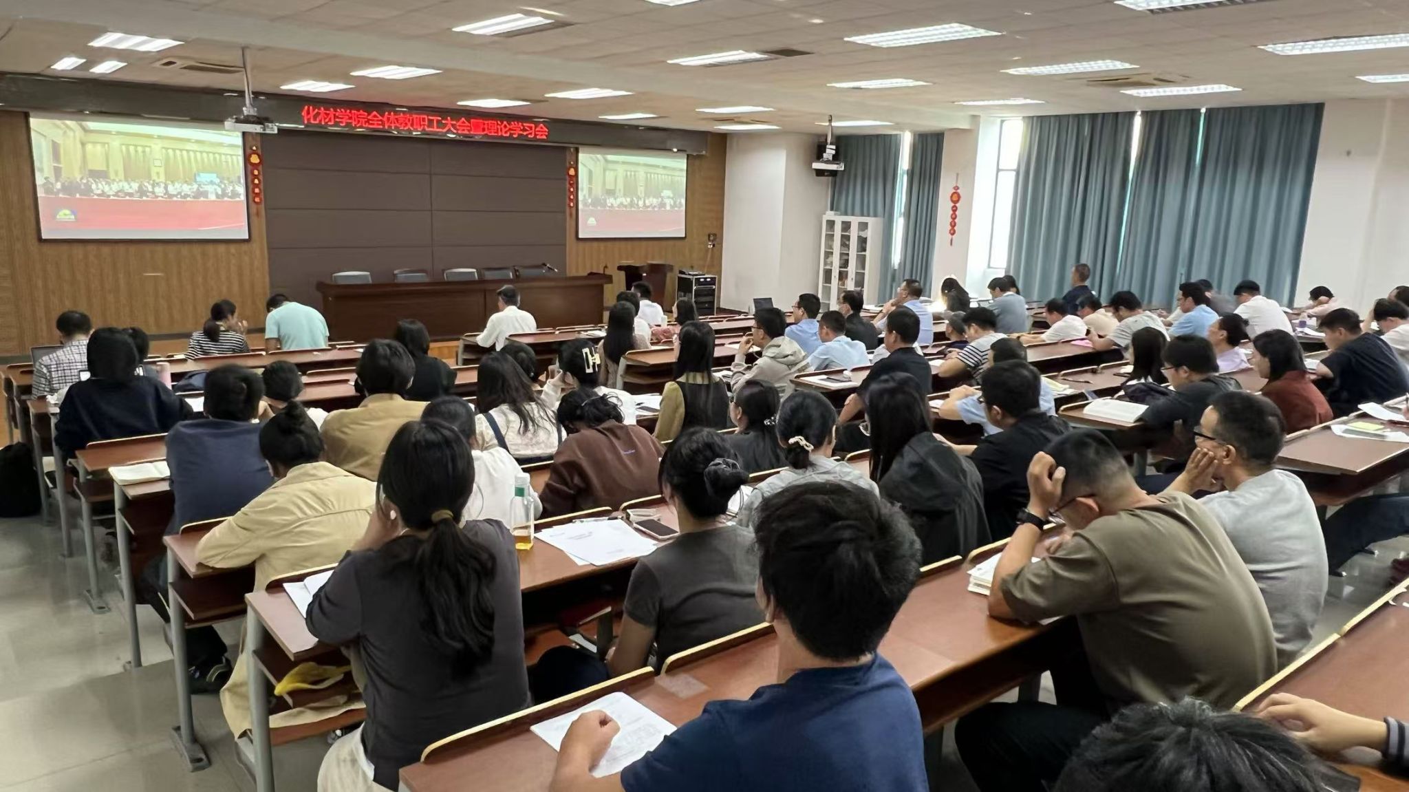 全体教职工共同观看了电影《我爱我的老师》。该影片基于浙江省内优秀教师的真实事迹改编,以“四有好教师”的标准和教育家精神为主线,展现了浙江教育的新时代风貌。老师们纷纷表示深受鼓舞和启发,将进一步强化“为党育人、为国育才”的初心使命和赤诚情怀,以更加坚定的理想信念和责任担当,承担起新时代教育的新使命,用实际行动践行教育家精神,为教育强国贡献力量。