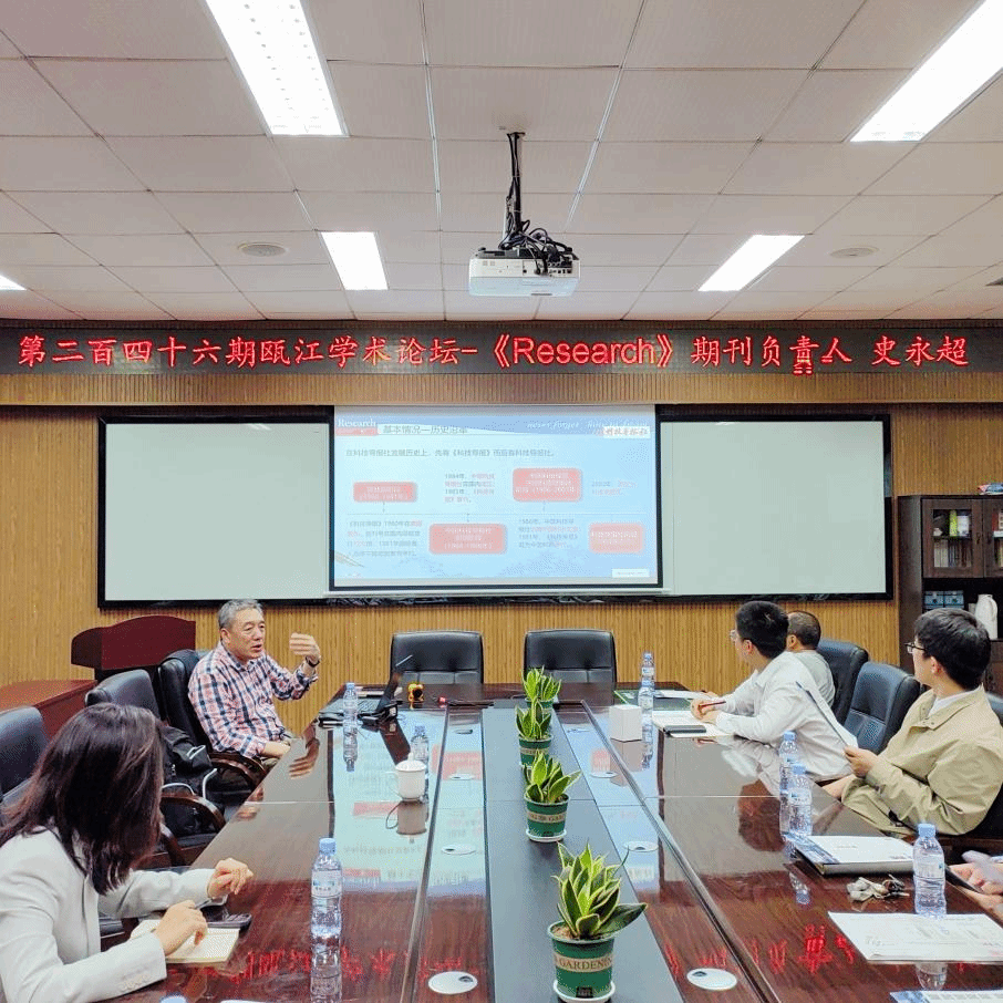 化材学院第二百四十六期瓯江学术论坛,在化材学院204会议室为师生们做《Science》伙伴期刊《Research》推介宣讲会。讲座由化材学院的陈亦皇教授主持。