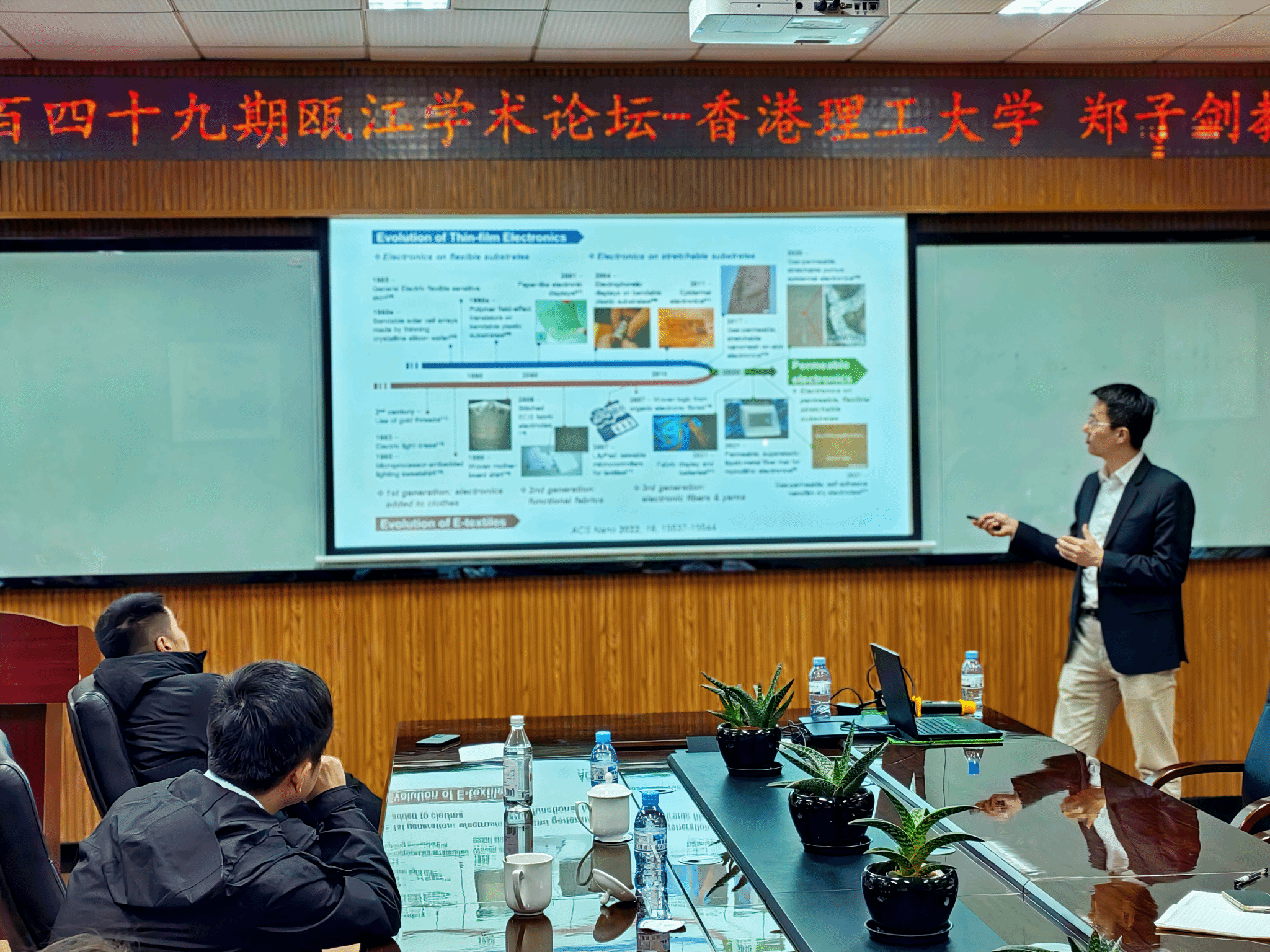 化材学院第二百四十九期瓯江学术论坛,在化材学院204会议室为师生们做题为“透气柔性电子”学术讲座。讲座由化材学院的张礼杰副院长主持。