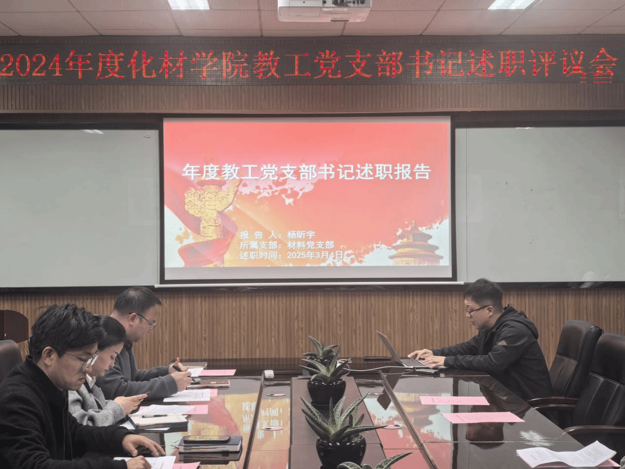 为深入学习贯彻党的二十届三中全会精神和习近平总书记关于党的建设的重要思想,聚焦巩固党纪学习教育成果,扎实推进“一融双高”建设,以高质量党建引领学科发展和拔尖人才培养,2025年3月4日下午,化材学院在化材楼11B204会议室召开2024年度党支部书记述职评议会。会议由学院党委书记邹超主持,学院教工党支部书记、党支部委员代表参加会议。