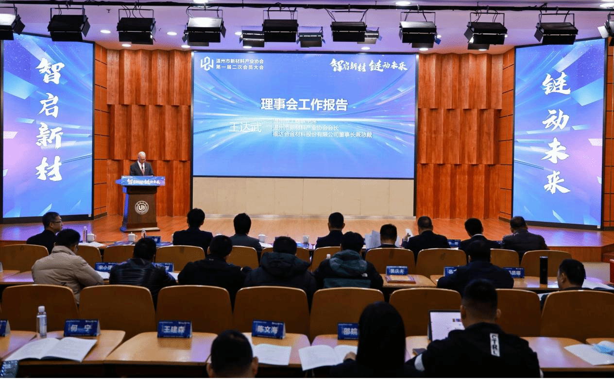 王达武代表理事会做工作报告。他表示下一步,温州市新材料产业协会将紧密围绕国家战略目标和会员发展需求,让新材料产业在我市经济社会发展中的地位更加突出,为将温州打造成为世界一流新材料基地贡献协会力量。