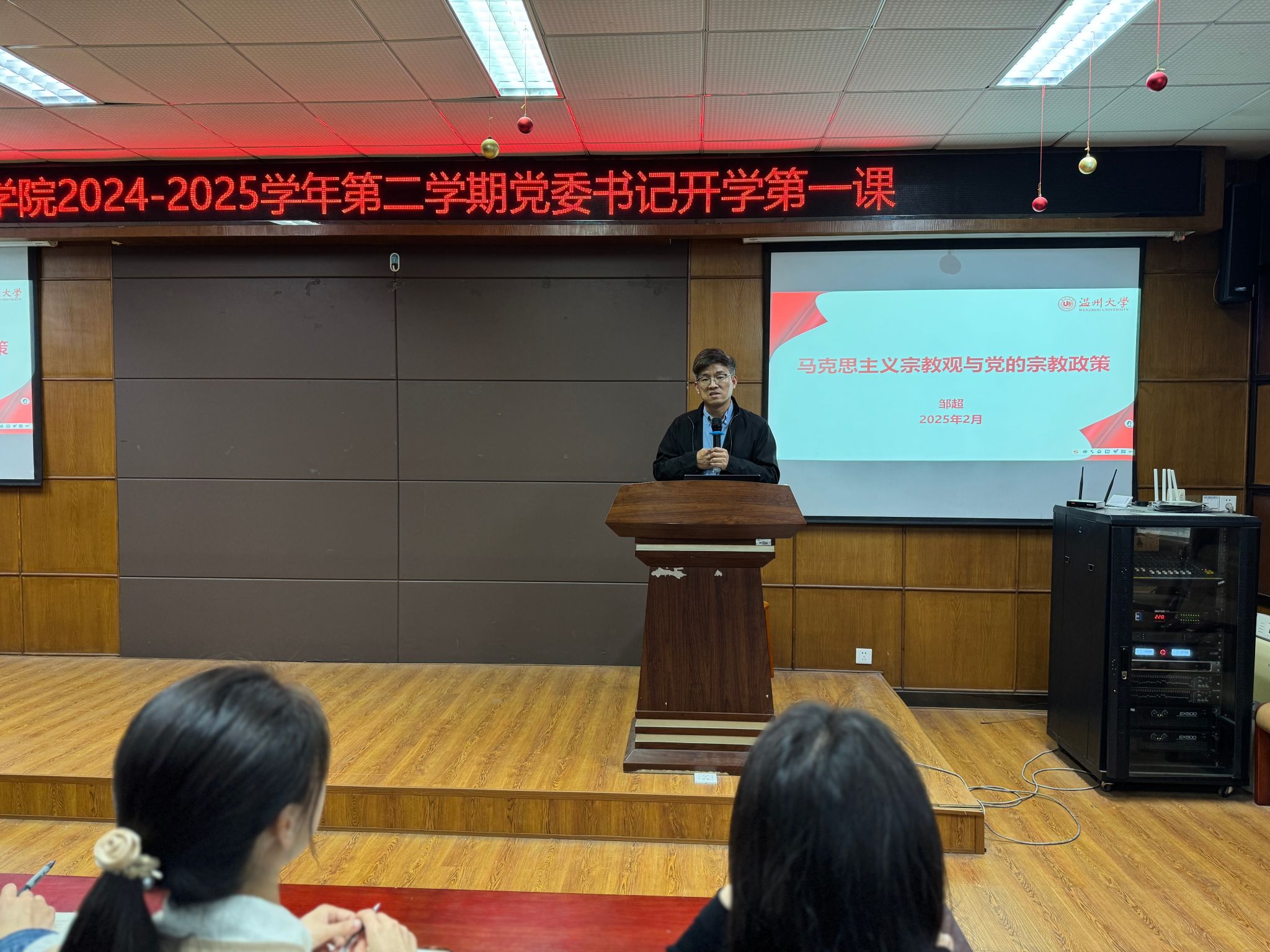 为了深入学习贯彻马克思主义宗教观,提升青年学生对宗教问题的理性认识与辨析能力,切实筑牢学生思想防线,2月27晚,学院党委书记邹超以“马克思主义宗教观”为主题,为全体学生讲授“党委书记第一课”,全体本研学生线上线下参与。