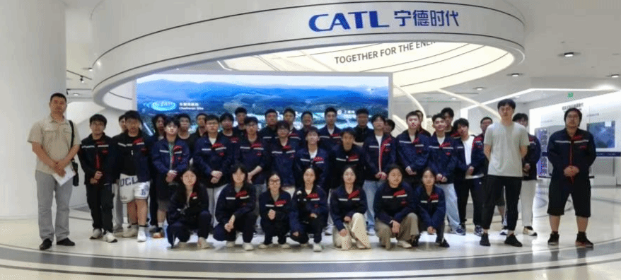 5月24日,赵世强和张杭老师带队走进宁德时代。宁德时代新能源科技股份有限公司是全球领先的动力电池系统提供商,深耕新能源汽车动力电池及储能系统领域,连续多年位居全球动力电池装机量榜首,其产品覆盖动力、储能、回收全产业链,技术实力与市场占有率均处于行业绝对领先地位。在智能化生产基地,前工序车间的电极涂布工序实现了浆料厚度误差几个微米的精准控制,辊压设备通过AI算法实时优化压力参数以提升极片一致性;后工序环节,全自动模组组装线采用视觉引导机器人完成电芯焊接,100%在线X光检测确保每颗电池的内部结构无瑕疵,质量是刻在每个工序里的细节。企业导师的细致讲解让同学们深刻理解到,从材料分子设计到系统集成创新,背后不仅是技术攻坚,更是对资源循环利用、全球气候治理的责任担当。看着高速运转却秩序井然的产线,同学们切实体会到“精益求精”的工匠精神对高端制造业的重要性。