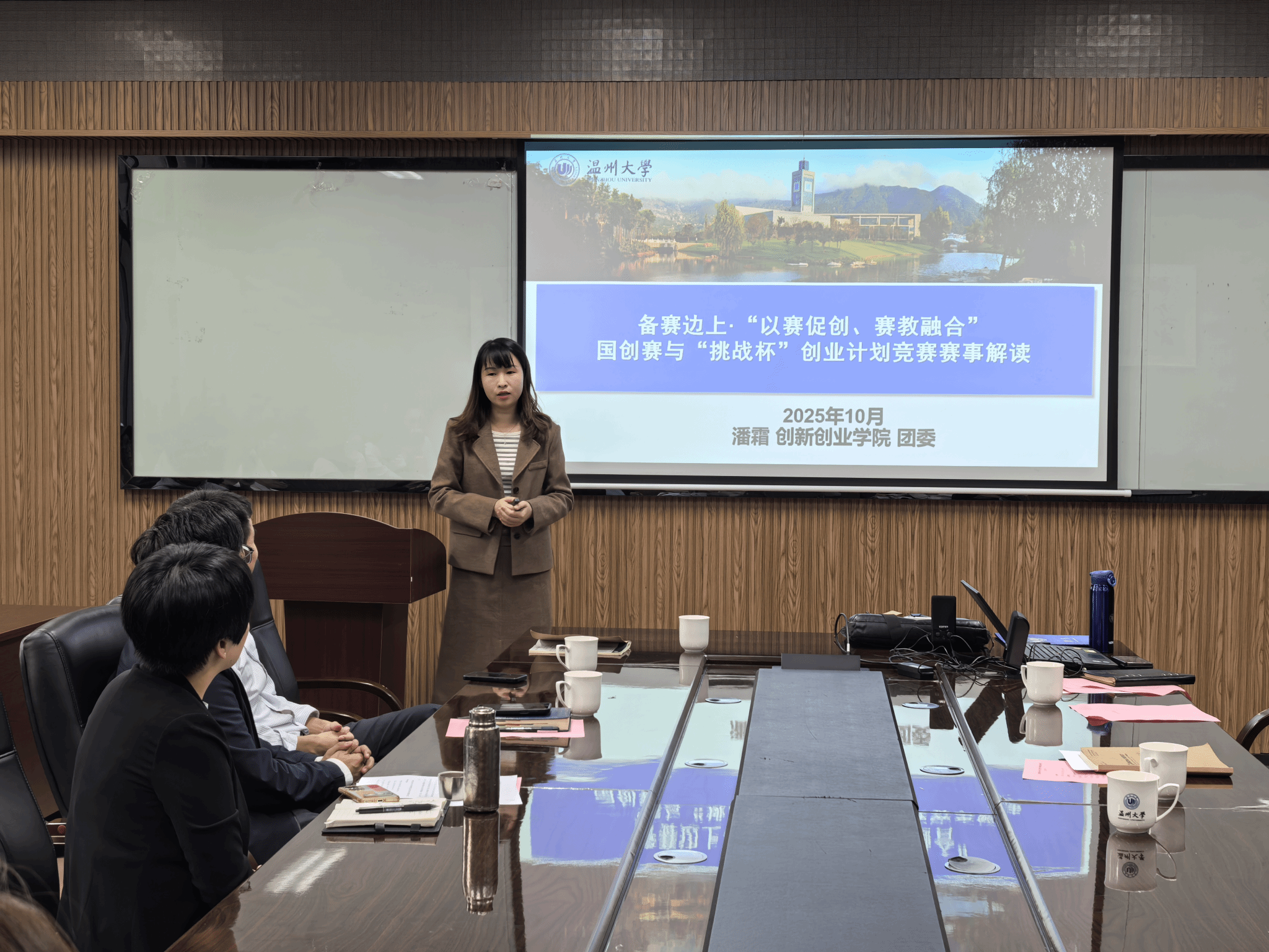 随后,校团委副书记兼创业学院副院长潘霜为再传师生带来备赛经验分享,为在场青年教师带来了及时雨。她围绕学科竞赛政策解读、备赛资源整合、指导能力提升三大核心,结合近年各类科创赛事的变化趋势,详细讲解了不同阶段的备赛重点。同时,潘霜还介绍了学校针对赛事的支持举措,为青年教师搭建了获取竞赛指导经验、链接优质资源的平台。