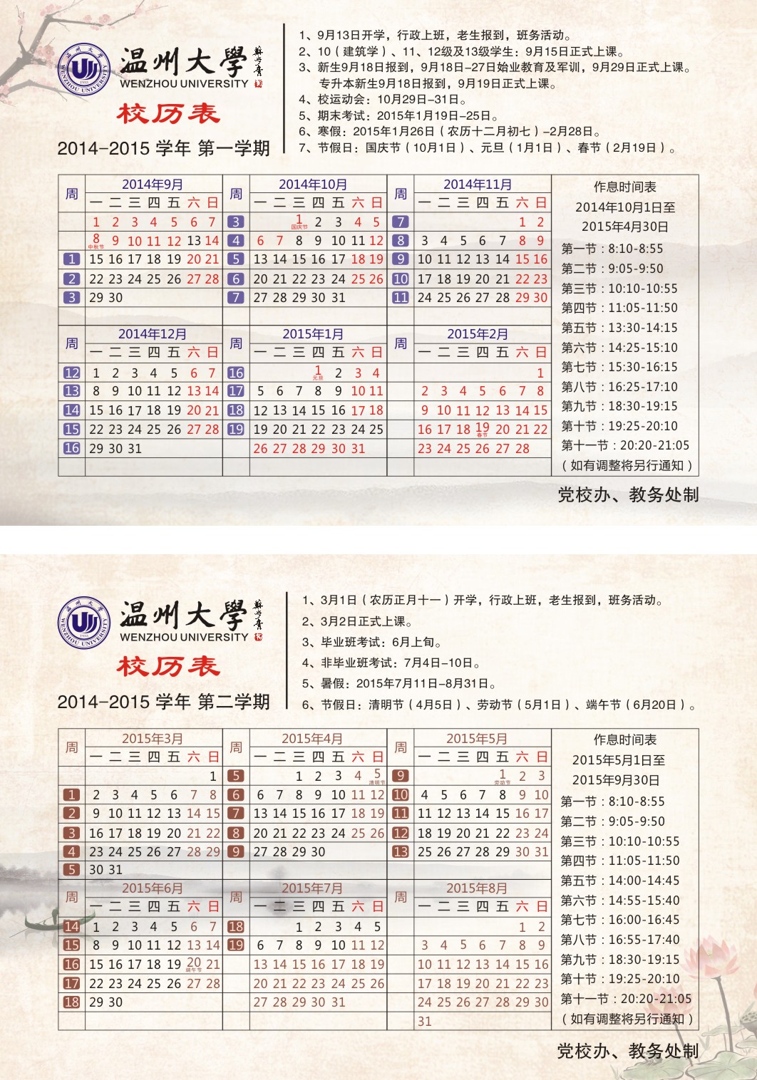 2014-2015学年校历表