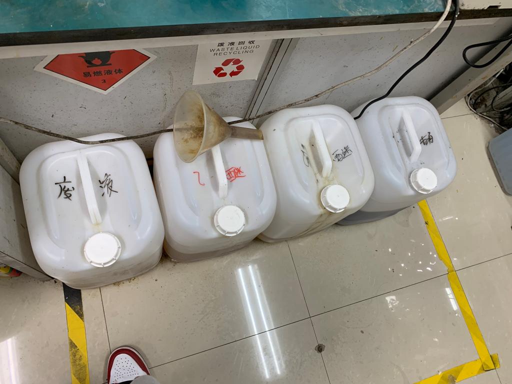 11D102B 废液桶只有文字标识 11D211 废液桶未贴标签