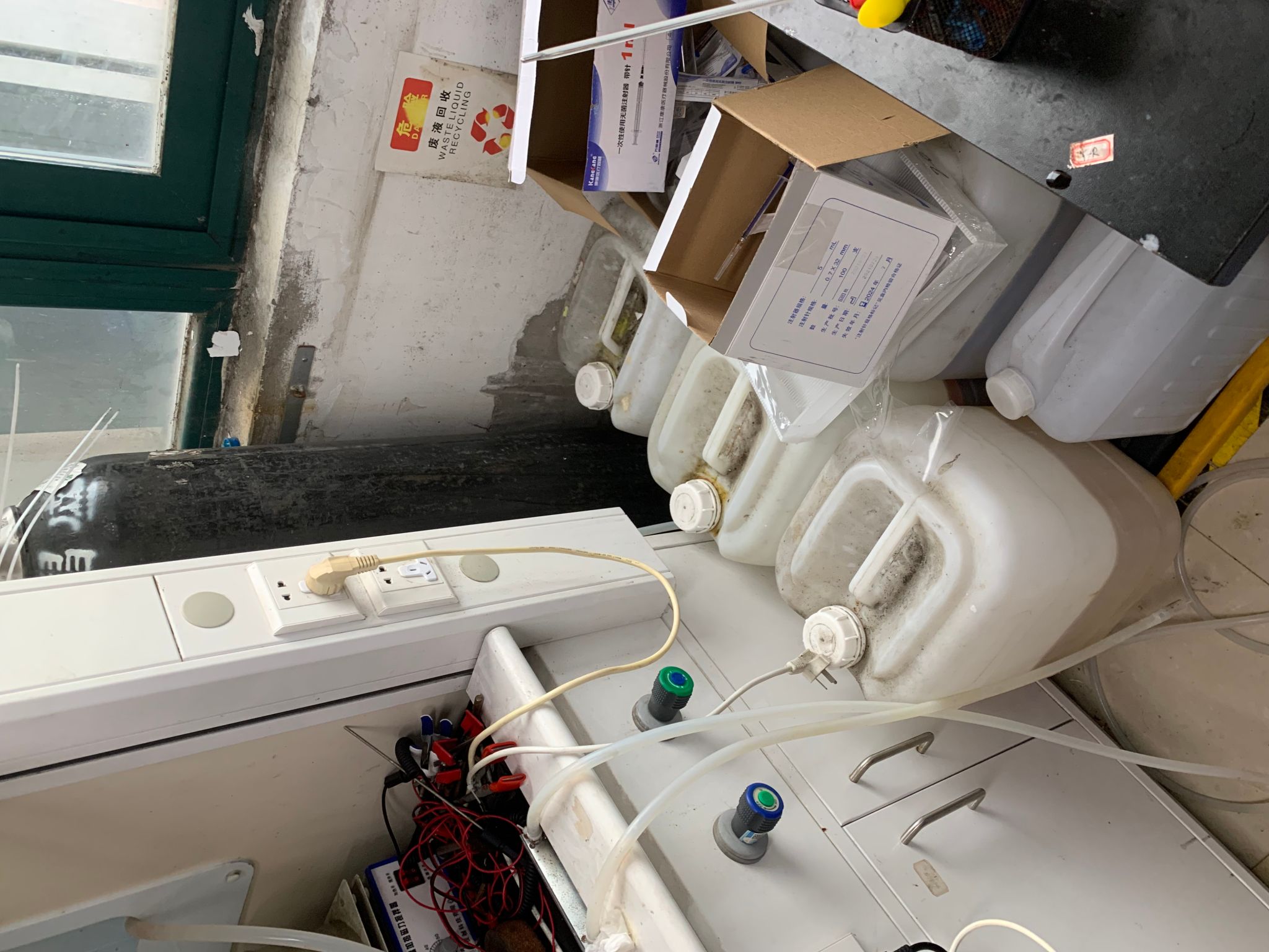 11B516废液桶未贴标签,气体钢瓶未固定