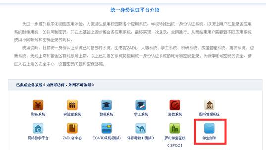 6、启用邮箱:通过身份认证平台(rz.pornrb.com)进入,选择“学生邮件”