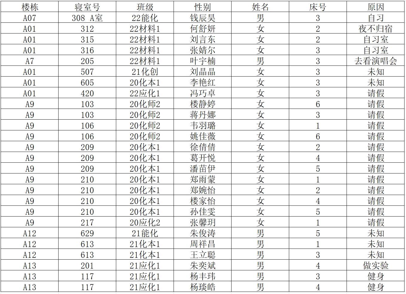 (2)若有学生在其他宿舍舍友可告知其返回核实;