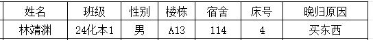 4.学院将每周一对未进行情况说明或对存在迟归、夜不归宿的同学进行通报,情节严重的同学给予警告至记过处分,屡教不改者,且造成恶劣影响的,给予留校察看处分。