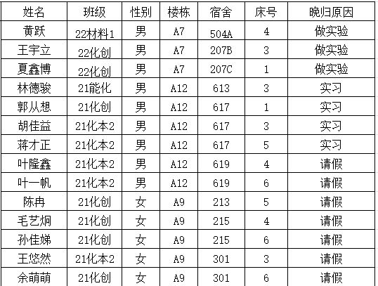 (2)若有学生在其他宿舍舍友可告知其返回核实;