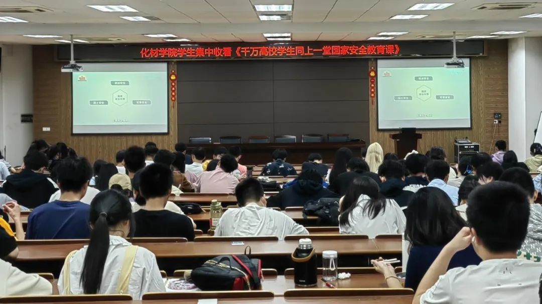 今年是习近平总书记提出总体国家安全观10周年,在第九个全民国家安全教育日,化材学院深入贯彻落实习近平总书记关于加强国家安全教育的重要指示批示精神,组织学生集中收看《千万高校学生同上一堂国家安全教育课》,围绕“总体国家安全观·创新引领10周年”活动主题深入开展国家安全宣传教育活动。