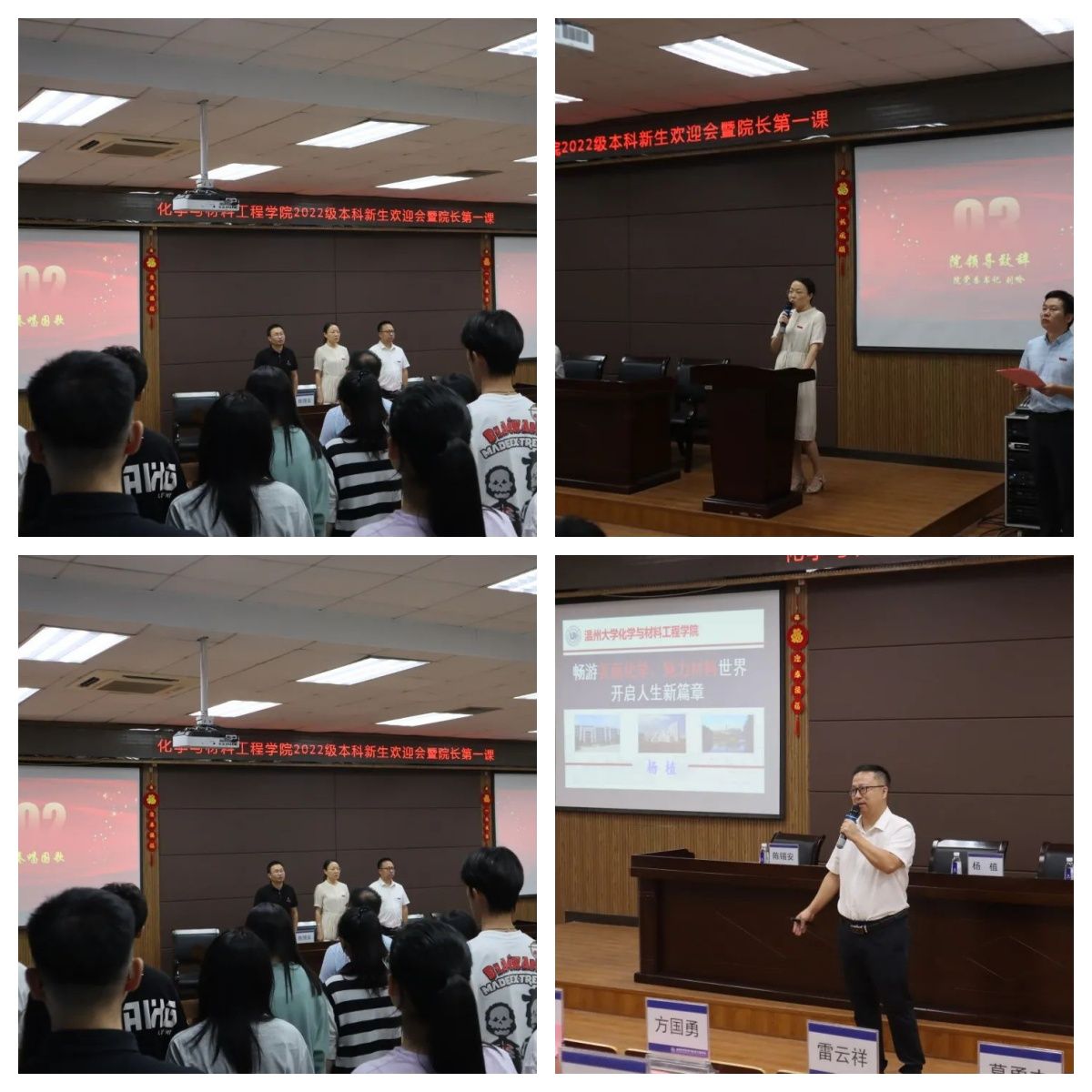 2022级本科新生欢迎会暨院长第一课在化材楼11C401举行。学院院长杨植教授、党委书记刘吟老师、副院长陈锡安教授、党委副书记周敬业老师、各系主任、各科室负责人出席活动。2022级本科生班主任、各年级辅导员、高年级老生代表以及全体2022级本科新生参加活动。活动由学院党委副书记周敬业老师主持。