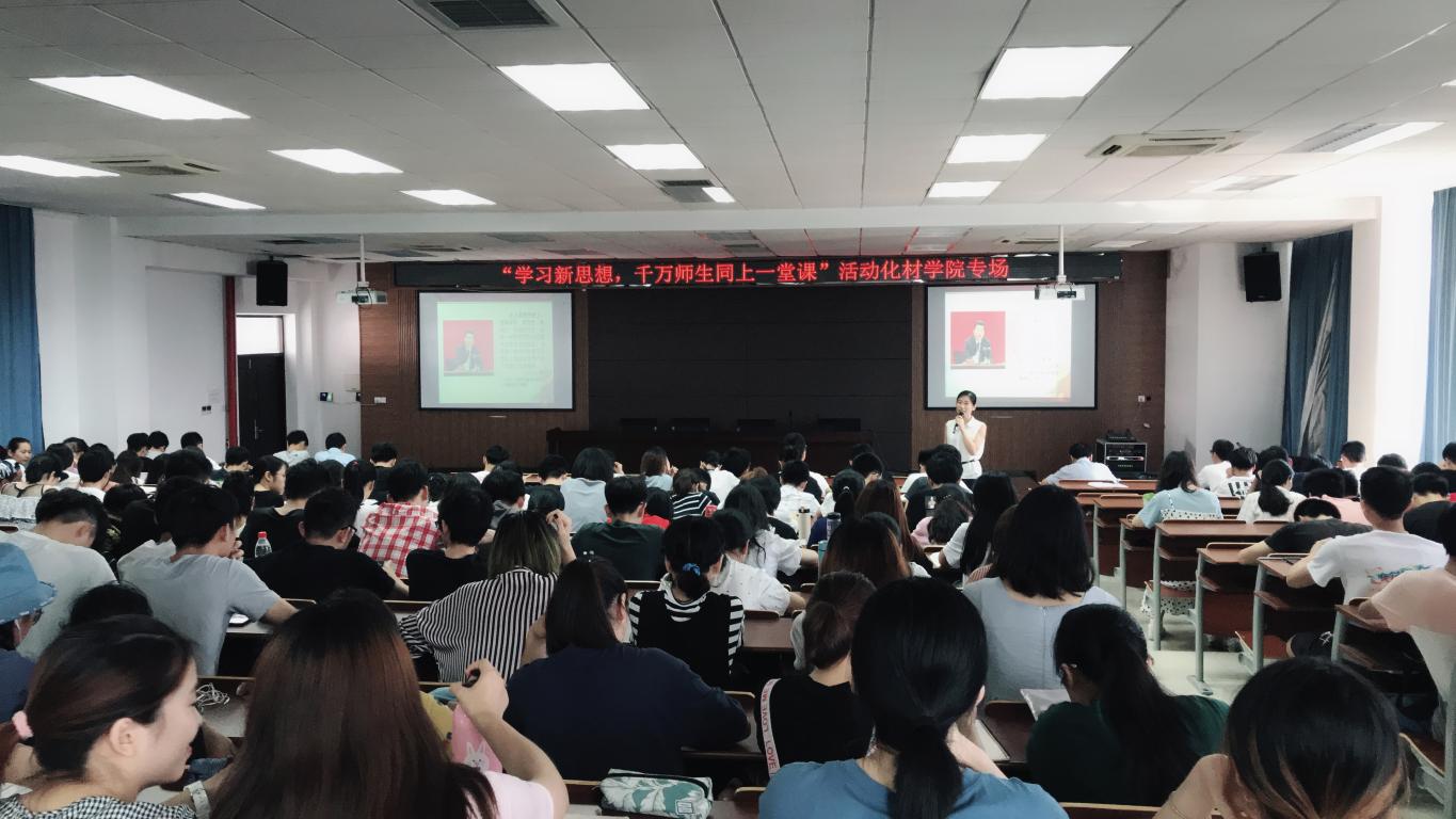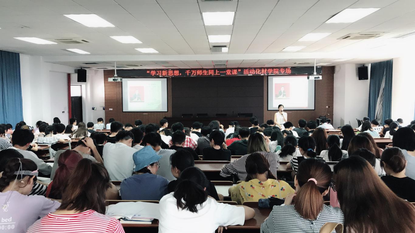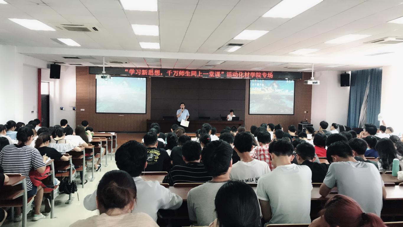 “学习新思想,师生同上一堂课”活动。6月27日星期三下午一点半在11C-401举行“学习新思想,千万师生同上一门课”活动化材学院专场学习会,学院师生近200人参加。