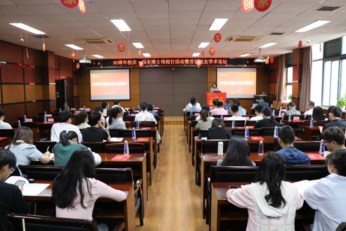 在11B208会议室成功举办百名博士母校行暨首届校友学术论坛活动。学院院长杨植教授、学院党委书记刘吟、校友浙江大学教授李永泉、校友中山大学教授吴明娒等三十几位国内外优秀校友出席论坛,七十余位学院教师及学生参会学习。