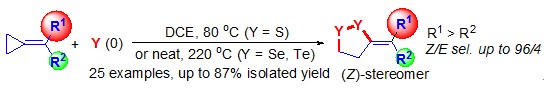 (43) Lei Yu,* Yulan Wu, Tian Chen, Yi Pan, Qing   Xu.* Direct Synthesis of Methylene-1,2-dichalcogenolanes via Radical   [3+2] Cycloaddition of Methylenecyclopropanes with Elemental Chalcogens. Org.   Lett. 2013, 15 (1), 144-147 (SCI-II, IF: 6.364).    DOI:10.1021/ol3031846