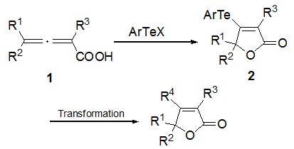 (61) Qing Xu,   Xian Huang,* Jingqi Yuan. Facile Synthesis of β-Organotellurobutenolides   via Electrophilic Tellurolactonization of α-Allenoic Acids. J.   Org. Chem. 2005, 70 (17), 6948-6951 (SCI-II, IF: 4.721). DOI:10.1021/jo050564r
