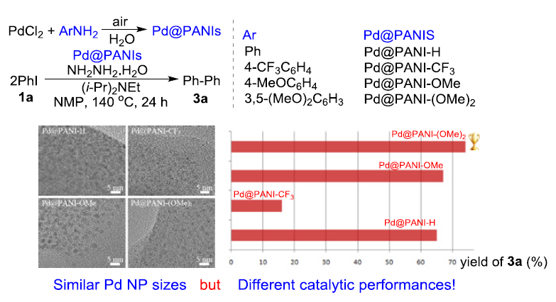 (23) Lei Yu,* Yaping Huang, Zheng Wei,   Yuanhua Ding, Chenliang Su,* Qing Xu.* Heck   Reactions Catalyzed by Ultrasmall and Uniform Pd Nanoparticles Supported on   Polyaniline. J. Org. Chem.2015,   80 (17),   8677–8683 (SCI-IIIF: 4.721). DOI:   10.1021/acs.joc.5b01358