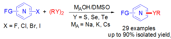 (19) Xiantao   Ma, Quan Liu, Xiaojuan Jia, Chenliang Su* and Qing Xu*,   Efficient Synthesis of Unsymmetrical Heteroaryl Thioethers and Chalcogenides   by Alkali Hydroxide-Mediated SNAr Reactions of Heteroaryl Halides   and Dichalcogenides, RSC Adv. 2016, 6 (62), 56930-56935. (IF 3.84). DOI: 10.1039/C6RA10517C