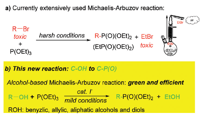 (4)     Xiantao Ma, Qing Xu,*   Huan Li, Chneliang Su, Lei Yu, Xu Zhang, Hongen Cao and Li-Biao Han,*   Alcohol-Based Michaelis-Arbuzov Reaction: an Efficient and Environmentally-Benign   Way for C-P(O) Bond Formation. Green Chem. 2018, 20 (15),   3408-3413. (SCI新一区,IF   8.506). DOI:   10.1039/c8gc00931g
