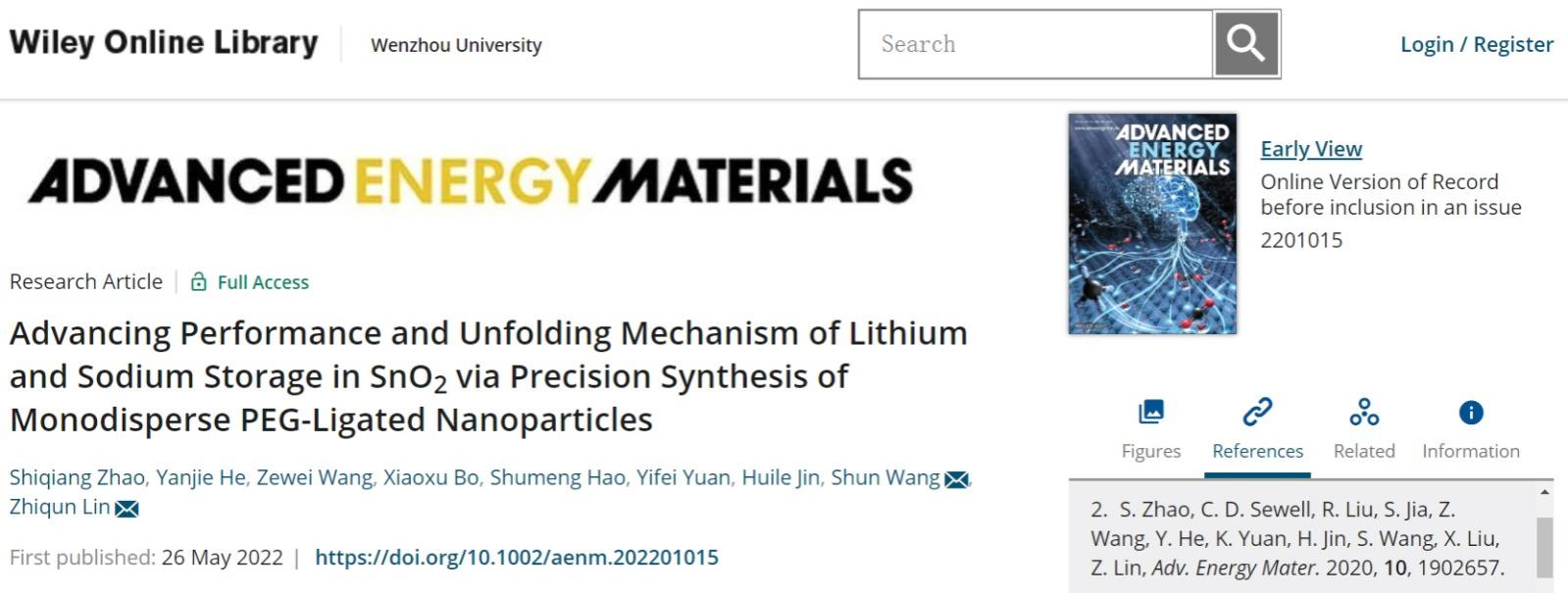 赵世强副教授第一作者的研究论文“Advancing Performance and Unfolding Mechanism of Lithium and Sodium Storage in SnO2 via Precision Synthesis of Monodisperse PEG-Ligated Nanoparticles”(聚乙二醇接枝单分散二氧化锡纳米颗粒的精准合成及储锂/钠性能提升和储能机理探究),日本a片