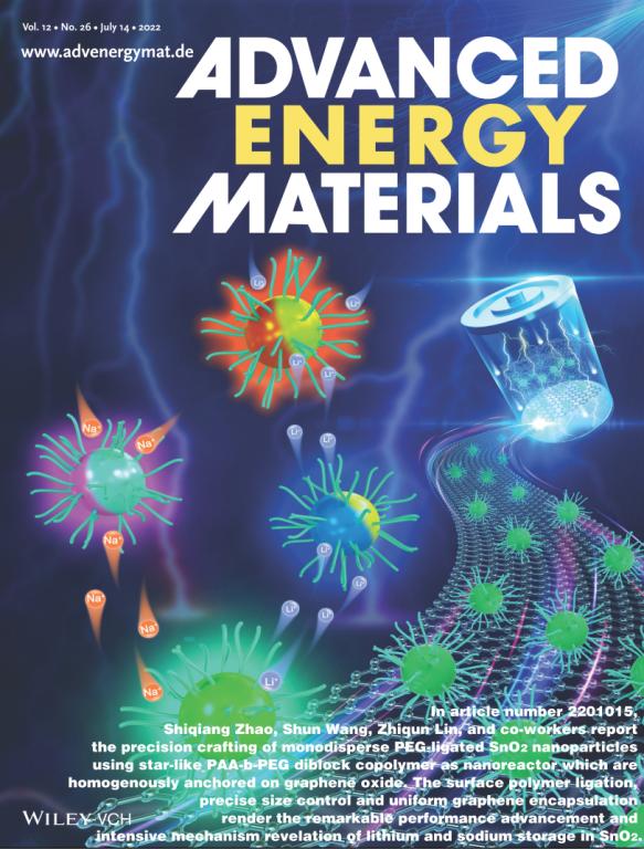 赵世强副教授第一作者的研究论文“Advancing Performance and Unfolding Mechanism of Lithium and Sodium Storage in SnO2 via Precision Synthesis of Monodisperse PEG-Ligated Nanoparticles”选为期刊封面文章。日本a片