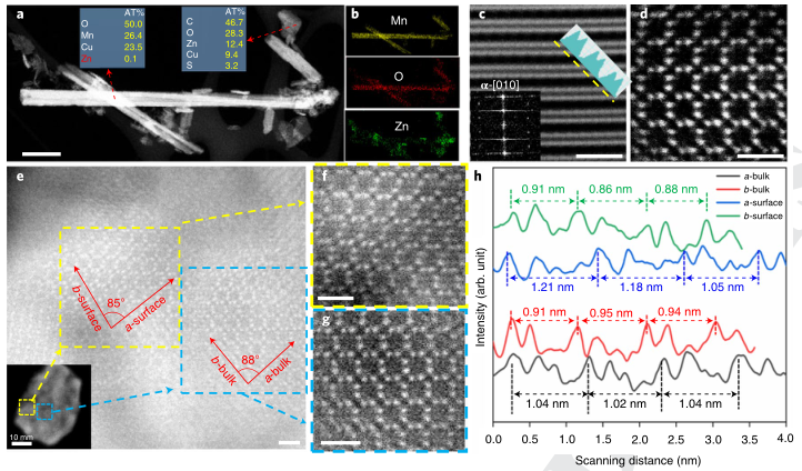 袁一斐教授、何坤副教授和美国阿贡实验室、伊利诺伊大学和牛津大学等研究团队合作,在国际顶级期刊《Nature Sustainability》发表题为“Understanding intercalation chemistry for sustainable aqueous zinc-manganese dioxide batteries”(二次水系Zn-MnO2电池载流子嵌入机制的研究)的论文。本工作利用先进的球差校正电子显微镜、电化学分析表征和理论计算,研究了阴极材料(更具体地说是隧道结构α-MnO2)内的载流子插层化学。该研究结果表明,在水系二次Zn//ZnSO4//MnO2电池体系中, Zn2+插入隧道结构α-MnO2晶格的可能性极低,但可逆H+插入过程占主导地位;单个MnO2纳米线内由于H+吸收而引起结构不均匀性,即表面区域的隧道严重扭曲,且具有高度的各向异性膨胀的趋势。理论模拟支持了实验观察,并提供了更深入的质子存储动力学机制的见解,进一步推进了对该电池系统的基本理解,为优化质子插层动力学以更好地进行电池设计提供了理论指导。Nature Sustainability期刊同期刊发了美国陆军研究实验室许康和美国马里兰大学王春生教授的新闻评述观点,评价这项工作是“为理解此水系电池体系的工作机制和实现储能性能的升级之路清除了一个主要障碍”。