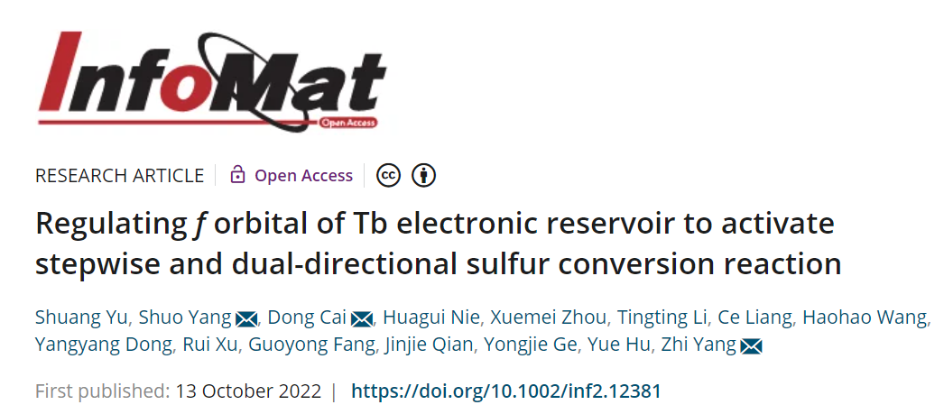 相关研究成果以“Regulating f orbital of Tb electronic reservoir to activate stepwise and dual-directional sulfur conversion reaction”为题发表在《InfoMat》(IF=24.789)上,日本a片